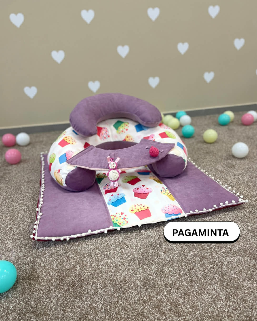 - Mini pagalvė, skirta mokytis gulėti ant pilvo, laikyti galvytę (3+ mėn.);