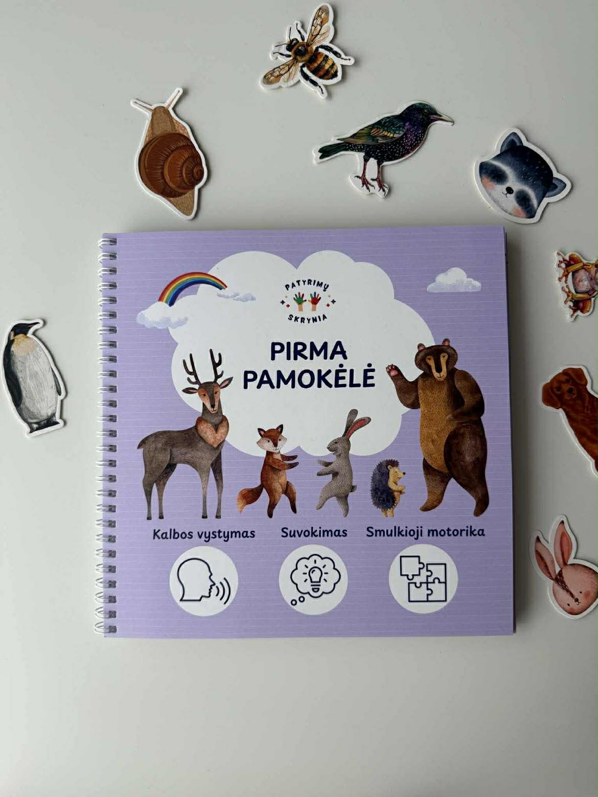 • Interaktyvus kamuoliukas – minkštas sensorinis kamuoliukas, skatinantis mažylio smalsumą, lietimo pojūčius ir pirmuosius žaidimus.