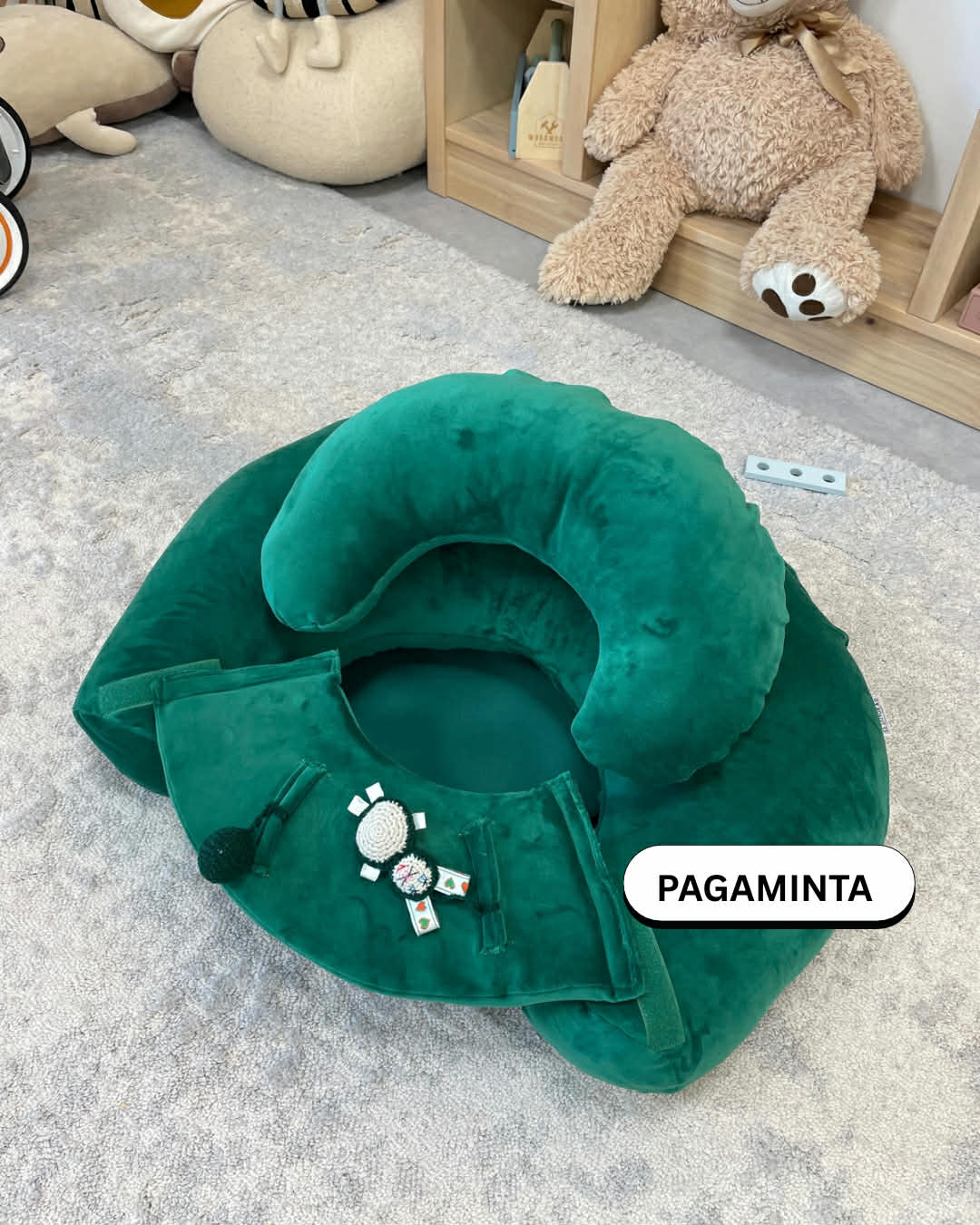 - Pagalvė lengvai transportuojama, todėl gali keliauti visur su šeima, kaip kelioninė pagalvė, tuo vaikas dar labiau lavėja, plečiasi kūdikio akiratis.