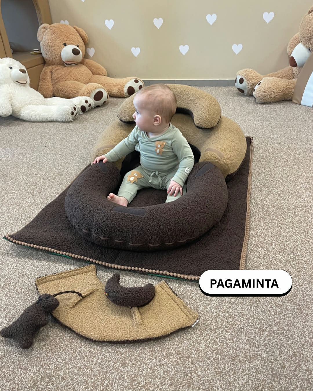 Sėdinukas kūdikiams „Komfortas“ su kilimėliu 95×75 cm – rankų darbo dovana naujagimiui