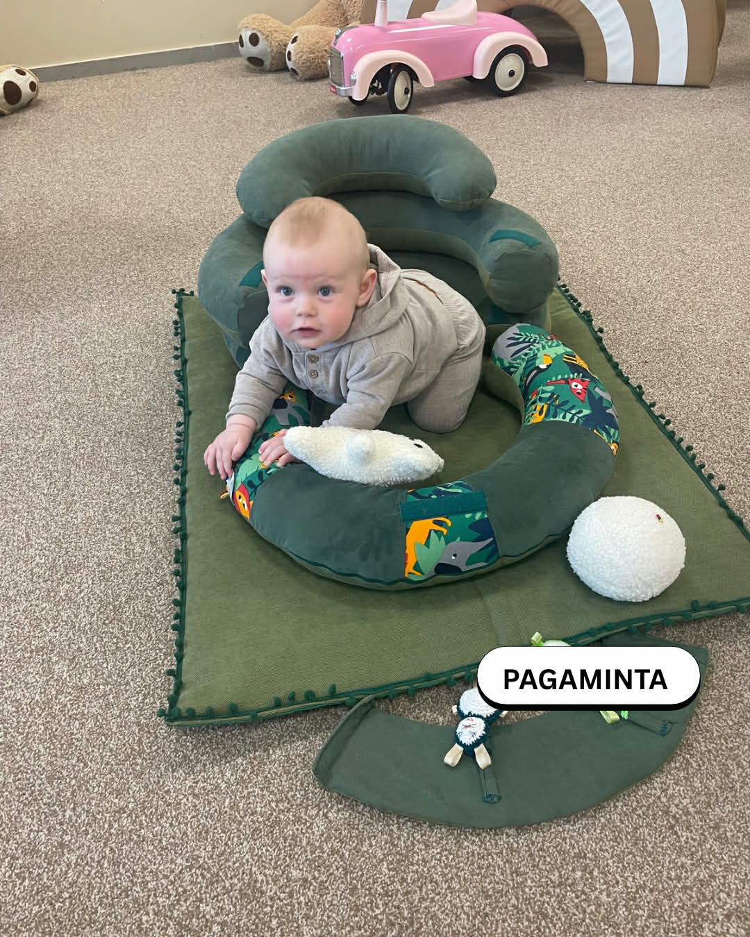 Sėdinukas kūdikiams „Transformeris“ su kilimėliu 95×75 cm – rankų darbo dovana naujagimiui ,,Miško pasaka“.