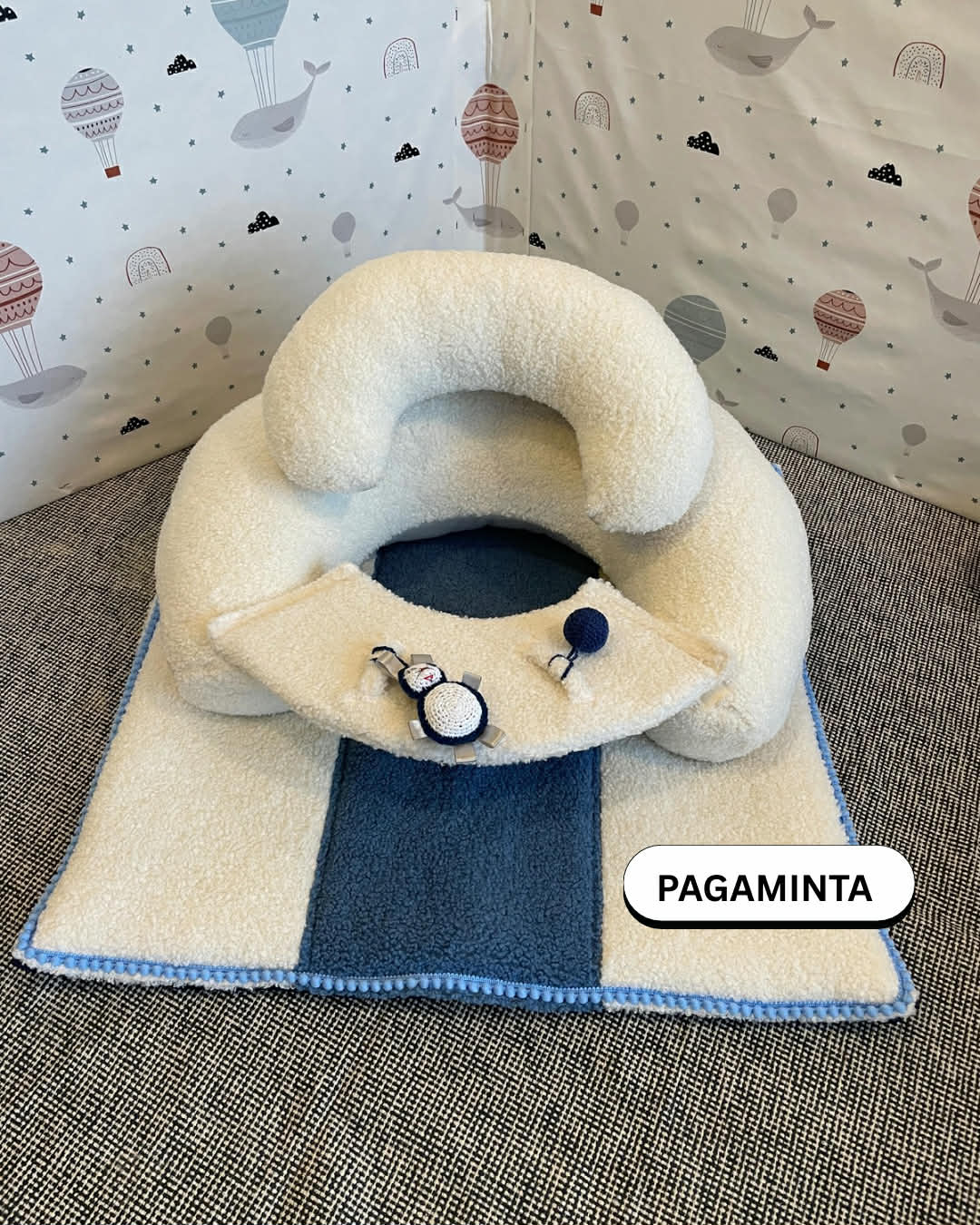 Rankų darbo sėdinukas kūdikiams „Sėdinukas su kilimėliu“ – tai funkcionali sėdėjimo ir atramos pagalvė bei praktiška dovana naujagimiui.